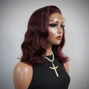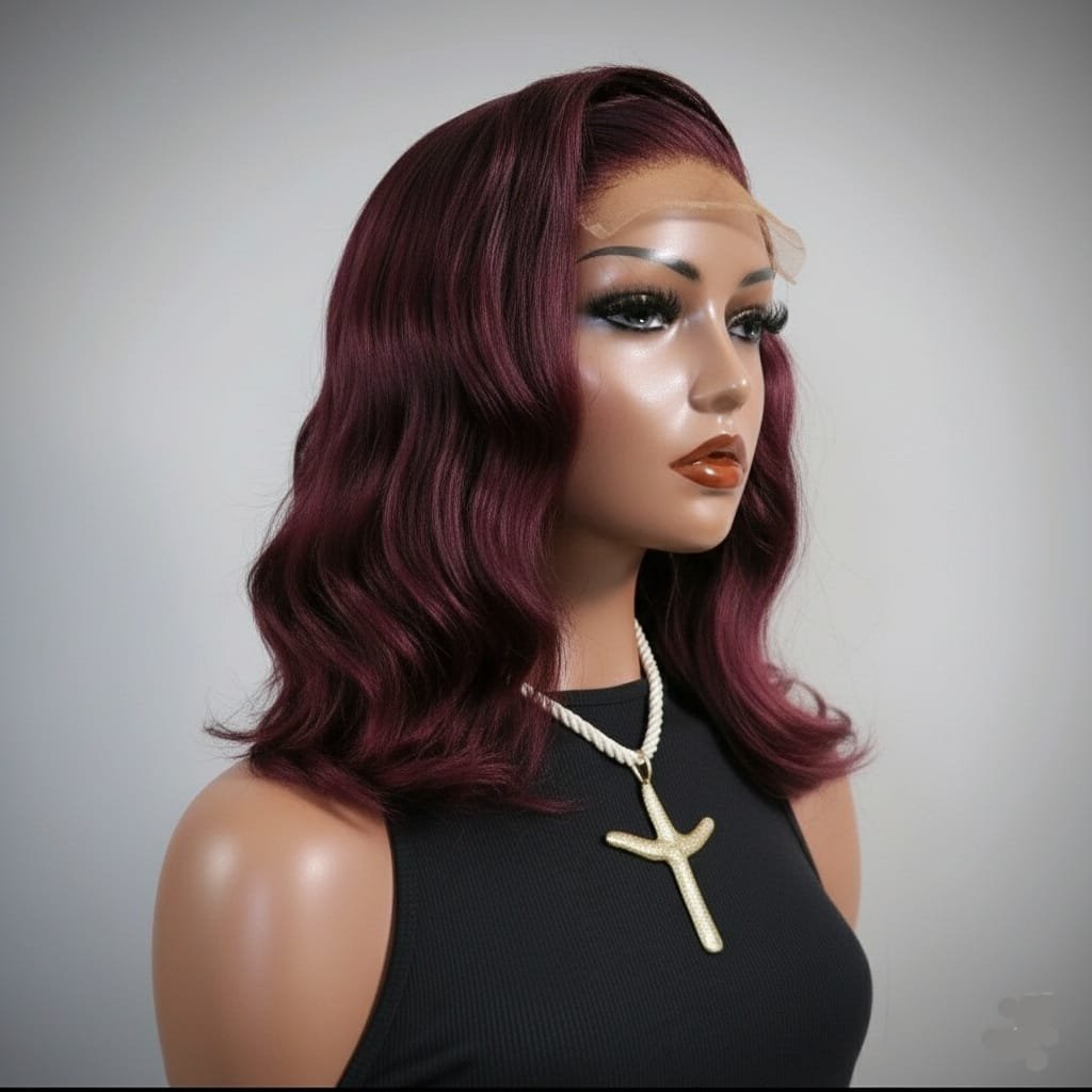Add a touch of bold sophistication with our Bounce Burgundy Lace Wig — where elegance meets confidence. This luxurious shoulder-length unit features soft body waves that frame the face beautifully, enhanced by a rich burgundy hue that glows under any light. The pre-plucked lace front ensures a seamless, natural-looking hairline for an effortless melt.